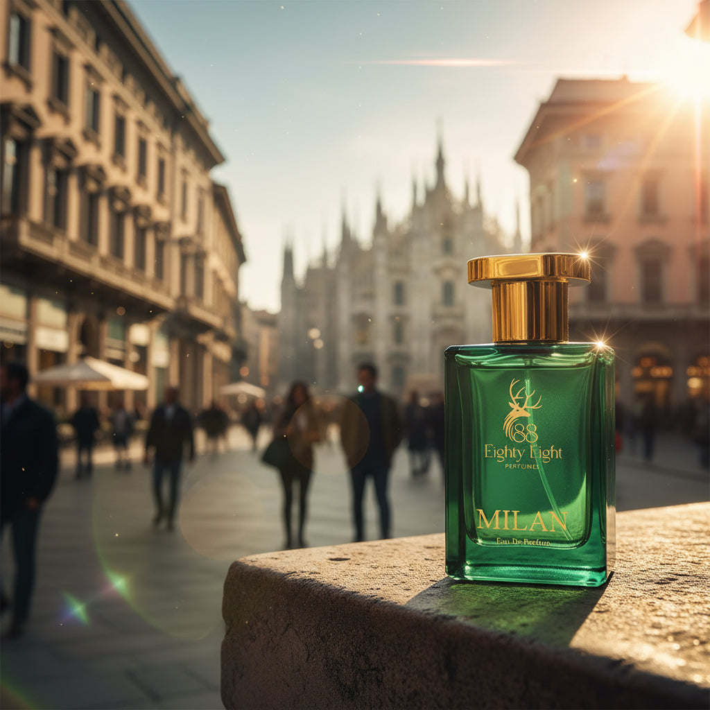 Our signature perfume Milan embodies timeless elegance. A refined blend of floral and woody notes that leaves a lasting impression of sophistication.